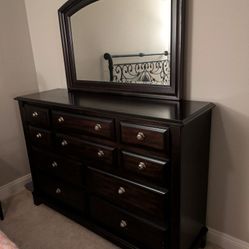 Five Furnitures Set Bed/Drawer Dresser Mirror/Drawers Ashley Wood/Glass Black $500Glendora, CA