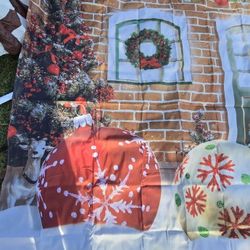 Christmas 10X7FT Garage Door Decorations Winter Xmas Tree Colorful Ball Candy Snow Door Cover Garage Door Banner for Outdoor Indoor White Brick Wall P$30Riverside, CA