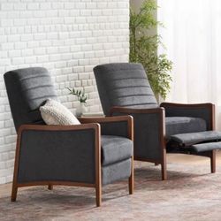 Mid Century Modern Fabric Channel Stitch Wood Pushback Recliners, Set of 2, Brown and Walnut$285El Monte, CA