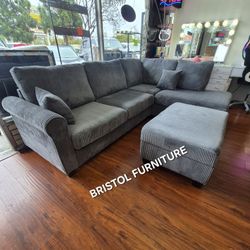 💝 Sectional Sofa and Ottoman with Storage, Dark Gray Corduroy Fabric, New in the Box.$520Santa Ana, CA