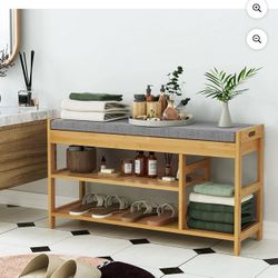 Shoes Bench with Cushioned Seat, Entryway Shoes Rack Bed End Stool with Storage Shelves, Natural (up to 7 Shoes) Eco-friendly Bamboo Materia$50Ontario, CA