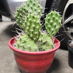 "Opuntia Sulphurea" Curly Prickly Pear Cactus in Beautiful Red Planter 🌵$50West Covina, CA