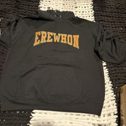 This is a black Erewhon x Champion x Pizzaslime pullover sweatshirt hoodie with an orange and green logo$250Highland Park, CA