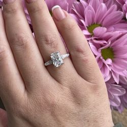 Brand New Sterling silver 925 3 Stone Engagement Ring With 3CT Radiant Cut CZ Simulated Diamond $65Anaheim, CA