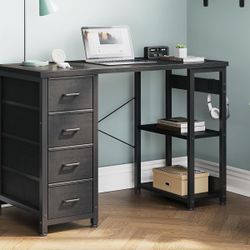 40 Inch Small Computer Desk with 4 Fabric Drawers, Modern PC Desk for Small Spaces, Home Office Desk with Storage Shelves, Black Shape Rect$45Ontario, CA