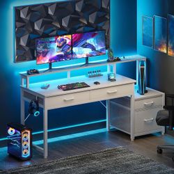 Gaming Desk with Led Lights & Power Outlet, 48 Inch Computer Desk with Drawers, Office Desk with Large Display Storage Shelves, Reversible $50Ontario, CA