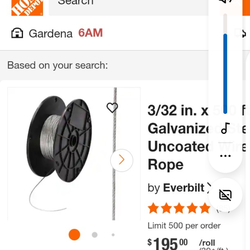 3/32 in. x 500 ft. Galvanized Steel Uncoated Wire Rope$130Torrance, CA