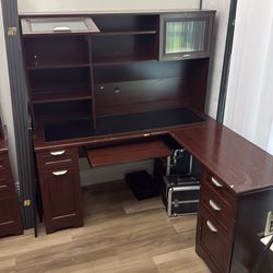 L-Shaped Office Desk with Hutch & Drawers – Solid Wood Look – Pickup Only$200Irvine, CA