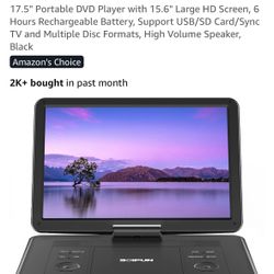 17.5" Portable DVD Player with 15.6" Large HD Screen, 6 Hours Rechargeable Battery, Support USB/SD Card/Sync TV and Multiple Disc Formats, High Volume$50Bell Gardens, CA