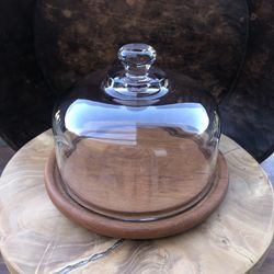 Vintage Goodwood Teak Wood Cheese Board Glass Cloche Dome MCM Server$25Buena Park, CA