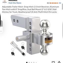 Adjustable Trailer Hitch -Drop Hitch 2.5 Inch Receiver, Aluminum Tow Hitch with 6" Drop/Rise, Dual Ball Mount (2" & 2-5/16") Ball Hitches for Truck, W$120Irvine, CA