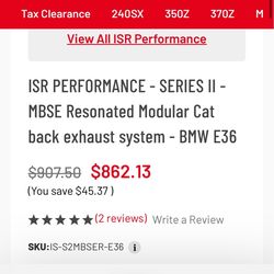 BMW e36 isr cat back exhaust$800Bellflower, CA