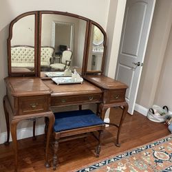 Antique Vanity/Dressing Table with Tri fold mirror & bench$500Windsor Hills, CA