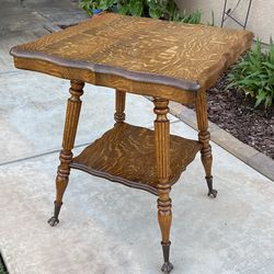 ANTIQUE TIGER OAK PARLOR TABLE W/ CLAW & BALL FEET (24” X 24” X 28”H)$145Corona, CA