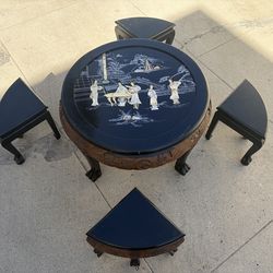 Vintage Chinese Black Lacquer Tea Table Set w/ 4 Stools – Mother of Pearl Inlay – Asian Chinoiserie$495Costa Mesa, CA