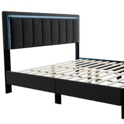 Queen Bed Frame with LED Lights, Faux Leather Upholstered Platform with Silver Wingback Headboard, Modern Style, No Box Spring Needed, Easy Assembly, $100Rancho Cucamonga, CA