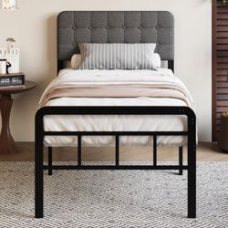 Twin XL Bed Frame with Upholstered Headboard and Metal Footboard $85Anaheim, CA
