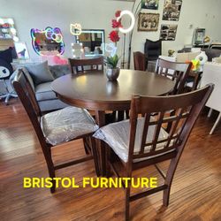 🥊 Round Dining Set 5 Pcs with Leaf Table, Counter Height, Brown Color, New In The Box.$450Santa Ana, CA