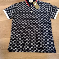 Gucci GG cotton piqué jacquard polo shirt in navy and white.$55Los Angeles, CA
