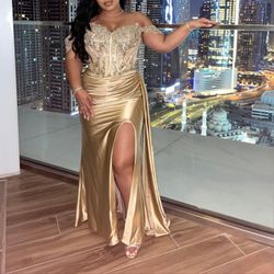 STUNNING Gold PROM Dress Size 10-12 Corset Gown | Nina Goddess Dress$150Jurupa Valley, CA