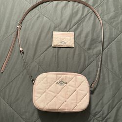 Compact quilted crossbody with adjustable strap. Pale pink leather body with logo and hardware. Simple silhouette for daily wear.$150Ontario, CA
