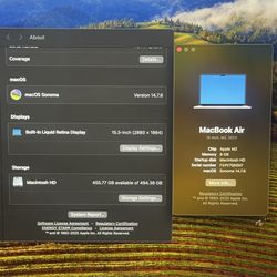 MacBook Air 15-inch M2 2023 8GB 512$800Santa Ana, CA