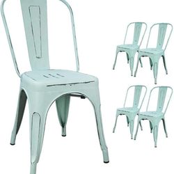 Indoor-Outdoor Chairs Distressed Style Kitchen Dining Chairs Stackable Side Chair with Back Set of 4 (Green) Material Metal Product Dimensi$55Ontario, CA