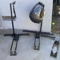 3bike stands Qualward and a XL Scorpion motorcycle helmet$40Irwindale, CA
