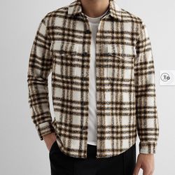 Express Men's Plaid Textured Wool Blend Shirt Jacket Shacket Outdoor Cream Tan S$69La Habra Heights, CA