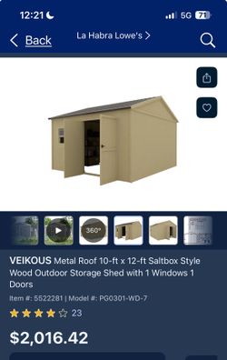 New in Box 8 ft. W x 10 ft. D Metal Shed with Lockable Doors, 4 Daylight Windows in Dark Gray$450Norwalk, CA