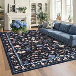Washable Area Rug 9 x 12 for Living Room, Non-Slip Soft Vintage Rug, Low Pile Farmhouse Floral Carpet, Non-Shedding Indoor Foldable Printed Rugs for B$100Jurupa Valley, CA