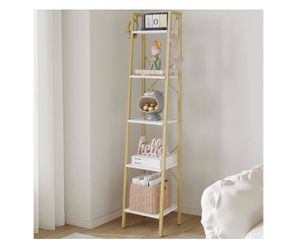 Ladder Shelf, Bookshelf Bookcase, Freestanding Corner Storage Shelve with 2 Hooks for Home Office, Living Room, Kitchen, Bedroom, Industrial, 11.8" D $69Downey, CA