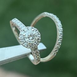 White Gold Diamond Halo Round Engagement Wedding Ring Set$2,900Torrance, CA