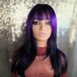 18" Purple Black With Bangs Foxy End Layered Synthetic Hair Wig New $25Hacienda Heights, CA