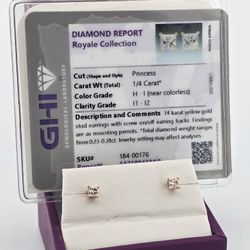 14k Yellow Gold Solitaire 1/4 ctw Princess Cut Natural Diamond Stud Earrings H-I I1-I3$250Los Angeles, CA