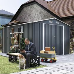 9×11 FT Outdoor Storage Shed: 3 Lockable Door Metal Utility Shed with Galvanized Steel Frame & 4 Ventilation System - Spacious Garden Tool Storage for$300Buena Park, CA
