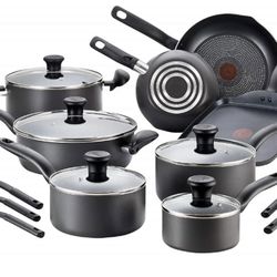 T-fal Initiatives Nonstick Cookware Set 18 Piece, Oven Broiler Safe 350F, Kitchen Cooking Set w/Fry Pans, Saucepans, Stockpots, Skillet, Spoons, Lids $70Los Angeles, CA