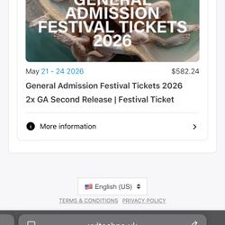 Two wristbands for weekend 2 $1,600$1,600Montebello, CA
