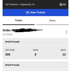 Concert Tickets$100Buena Park, CA