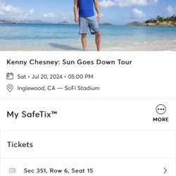 Kenny Chesney Concert Tix At SoFi$125San Dimas, CA