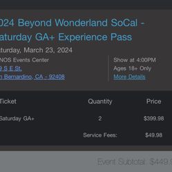 Beyond Wonderland GA $460 For 2 Sold Out Tickets$250Los Angeles, CA