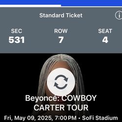 Two Tickets For Beyoncé Cowboy CARTER for May 9th$300Los Angeles, CA