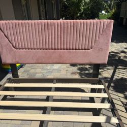 Queen Bed Frame And Pink Velvet Headboard $100El Segundo, CA