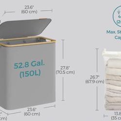 SONGMICS 52.8 Gallon (150L) Large Laundry Hamper w/ 2 Section Basket Removable Mesh Liner - Dove Gray$30San Gabriel, CA