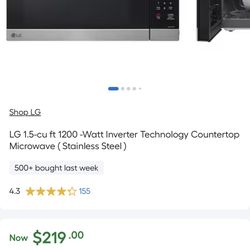 LG 1.5-cu ft 1200 -Watt Inverter Technology Countertop Microwave ( Stainless Steel )$179Los Angeles, CA