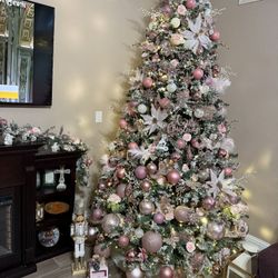 9 Ft Flocked Christmas tree with warm led lights wheel included and storage bag $225La Habra Heights, CA