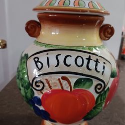 Vintage Hand-painted Ceramic & Porcelain Glossy Glaze Raised 3D, Fruit Buscotti Cookie Jar By Nonni's 13inch $25Los Angeles, CA