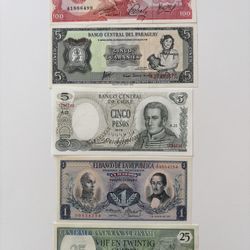 South America Banknotes Lot 5 Uruguay Chile Paraguay Suriname$15West Hollywood, CA