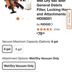 RIDGID 14 Gal. 6.0 Peak HP NXT Shop Vacuum Wet Dry Vac w/Filter, Hose & Attachments$85Bell Gardens, CA