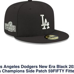 L A Dodgers New Era 59Fifty Black Champion Sidepatch$40Los Angeles, CA